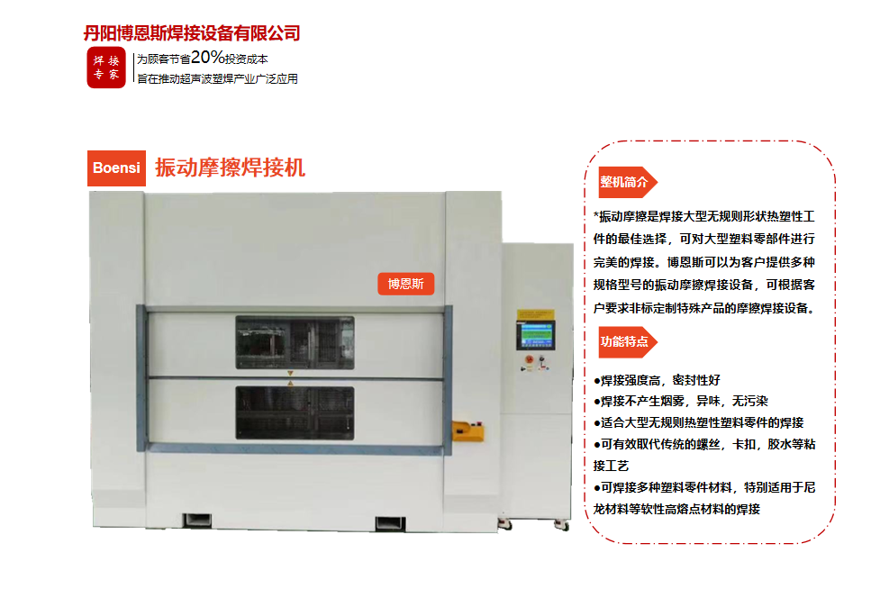 丹陽(yáng)博恩斯焊接設(shè)備有限公司是塑料焊接領(lǐng)域集研發(fā)設(shè)計(jì)、生產(chǎn)制造、銷(xiāo)售服務(wù)為一體的企業(yè)。公司自成立以來(lái)堅(jiān)持“以人為本”的理念,組織了一支強(qiáng)大的技術(shù)研發(fā)團(tuán)隊(duì),攜多年來(lái)積累的豐富經(jīng)驗(yàn),并結(jié)合國(guó)際先進(jìn)塑料焊接技術(shù),根據(jù)市場(chǎng)需要,不斷開(kāi)發(fā)具有核心競(jìng)爭(zhēng)力的新產(chǎn)品。公司具有很強(qiáng)的非標(biāo)機(jī)械研發(fā)、設(shè)計(jì)、生產(chǎn)能力,可為廣大客戶定制各類(lèi)專(zhuān)用機(jī)械設(shè)備。公司設(shè)計(jì)生產(chǎn)的塑料焊接設(shè)備已廣泛應(yīng)用于汽車(chē)、電子、家電、醫(yī)療器械、無(wú)紡布...